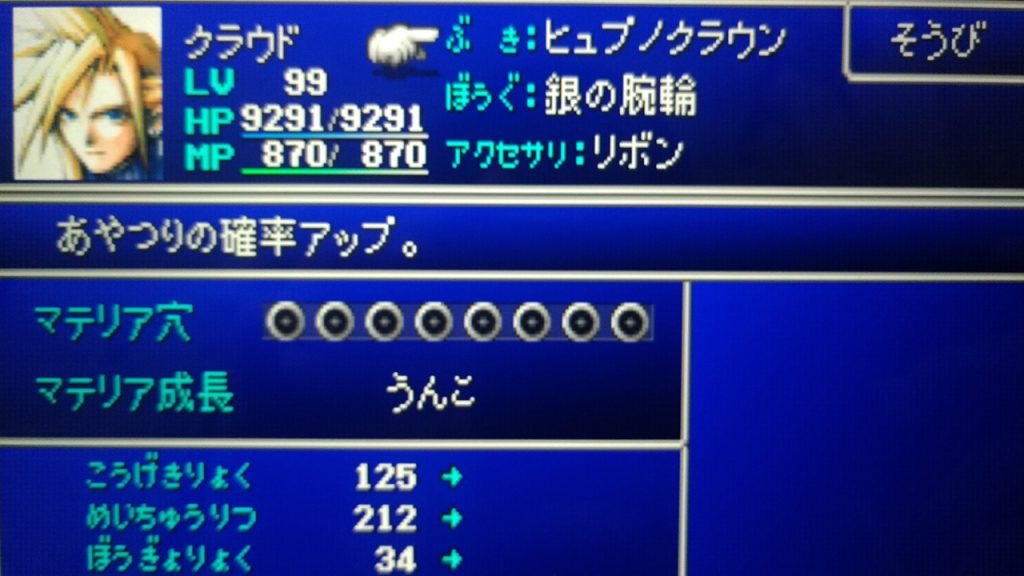 これは僕がPS1版FF7インターナショナルをプレイしていた時の事です。