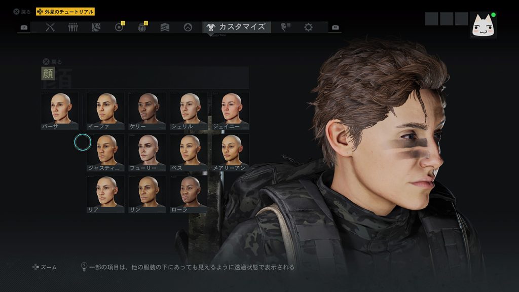 前作よりもパーツ数が減少した事と、キャラモデルも減ったため、納得のいくキャラ作成は出来なくなりました。
