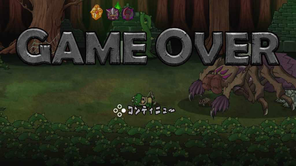 プレイしていて、もしやられてしまったら、ホーム画面へ戻り、セーブデータを復元します。