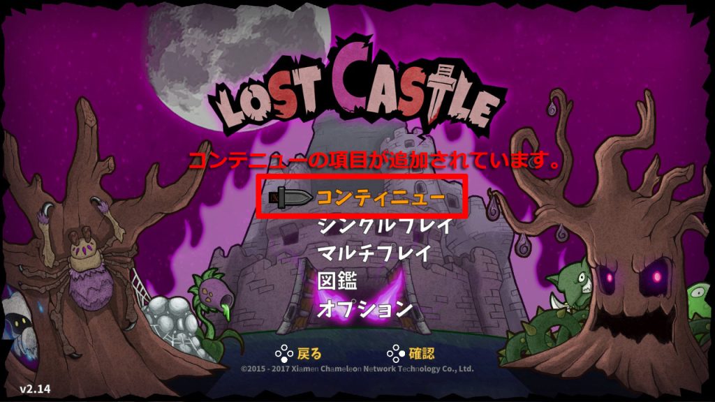メインメニューに戻ると、『コンテニュー』の項目が追加されています。