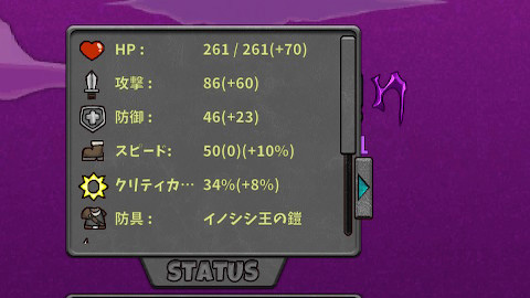 最終的なステータスはHP261、攻撃力86、防御力46でした。
