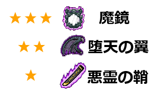 2位 堕天の翼:滑空できるようになり、ボスの攻撃を回避しやすくなります。ただし出現率がかなり低いため筆者がクリアした時は未入手でした。